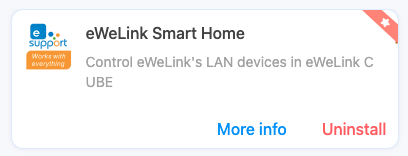 From the sidebar, I clicked on the Docker (whale icon), installed the eWeLink Smart Home Addon, logged in with my eWeLink ID, and synced my WiFi devices into CUBE OS.