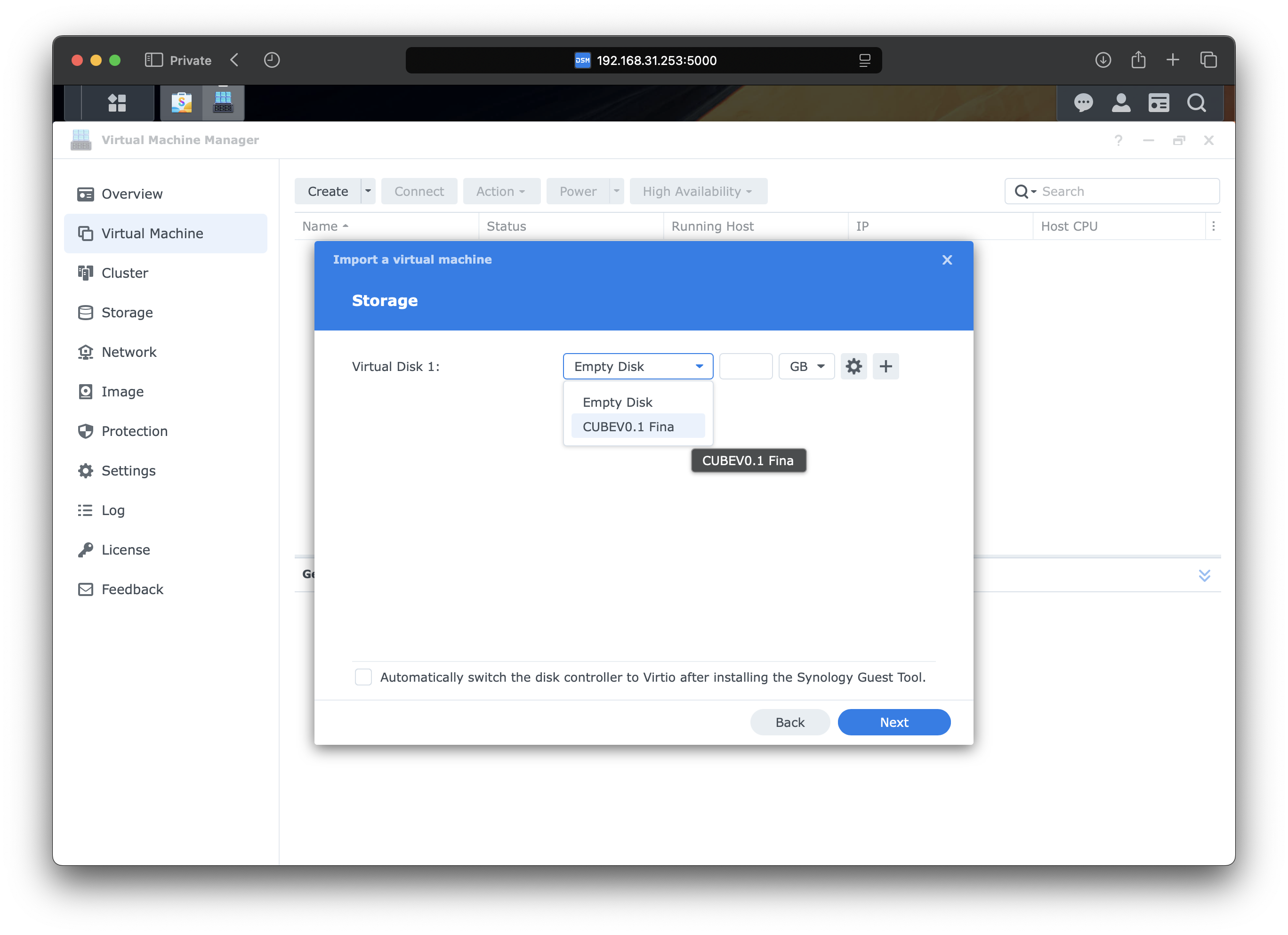 Переключитесь на `Вкладку изображений` и загрузите .vdi файл на ваш NAS. Пожалуйста, дождитесь завершения загрузки.