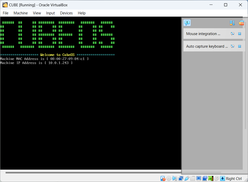 После завершения на экране будет отображён IP-адрес CUBE OS. Используйте этот IP-адрес или [cube.local](http://cube.local) чтобы получить доступ к веб-интерфейсу управления CUBE OS.