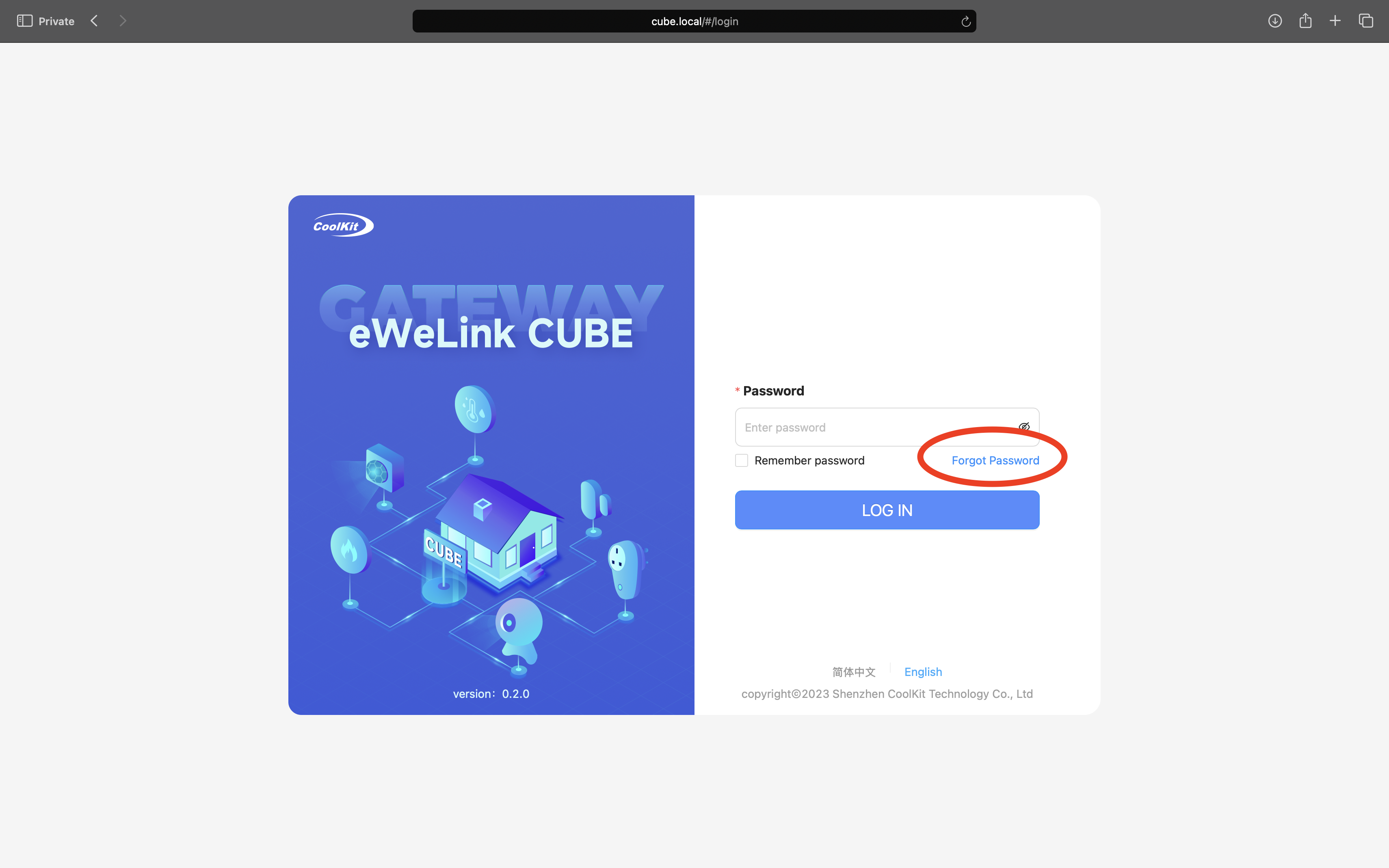 Inserisci il codice nella console web di CUBE OS e imposta una nuova password.