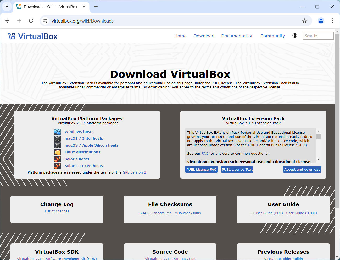 ดาวน์โหลดและติดตั้งตัวจัดการเครื่องเสมือน โดย [VirtualBox](https://www.virtualbox.org/wiki/Downloads) เป็นที่แนะนำ