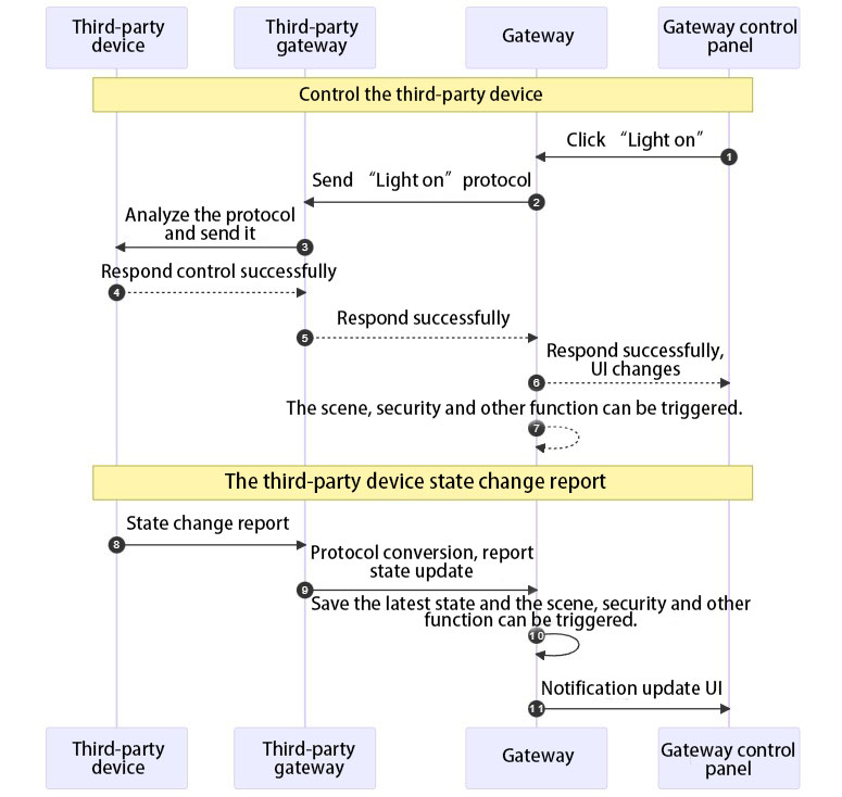 อินเทอร์เฟซ Web API ของเกตเวย์มีสองวิธีการเข้าถึง (ตาม IP หรือชื่อโดเมน) โดยปกติ root path จะเป็น /open-api/V2/rest/< specific function module >