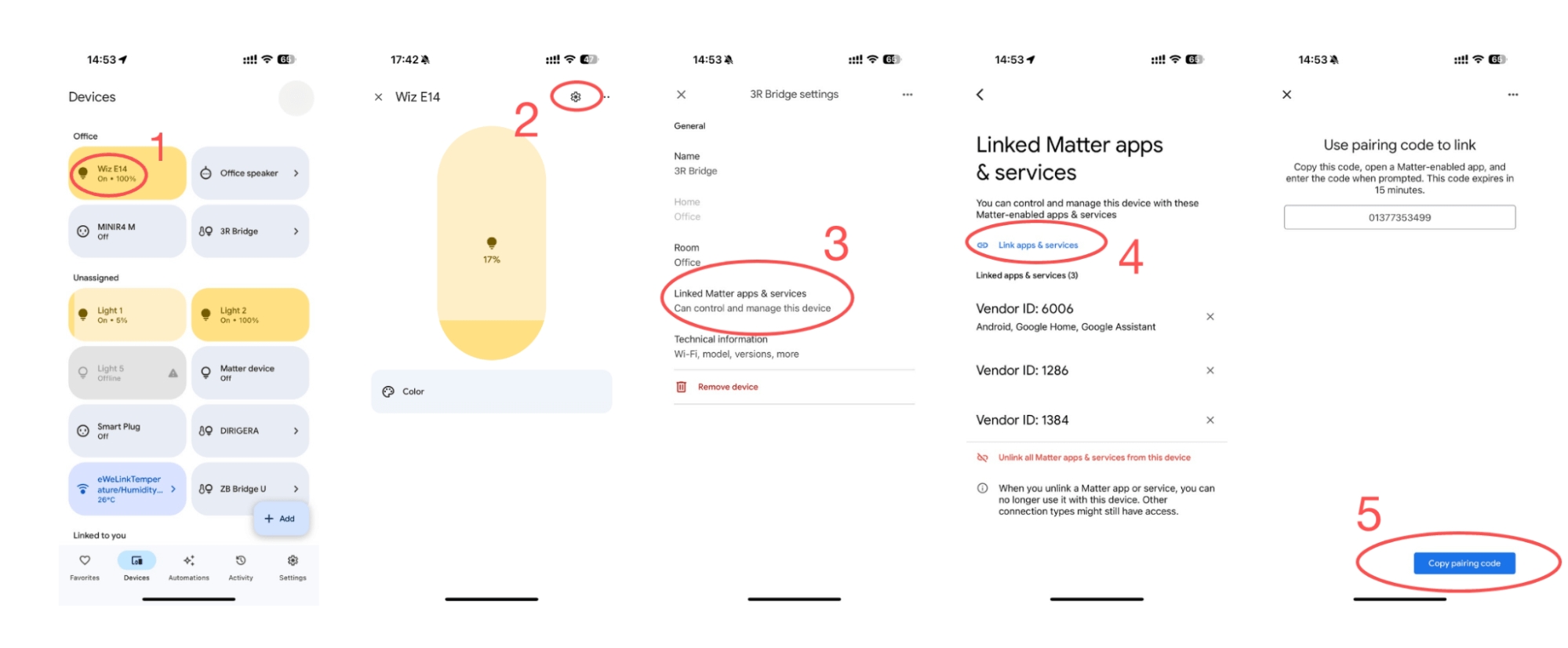 For Matter devices already in use, follow these steps to enable pairing and get the onboarding codes: