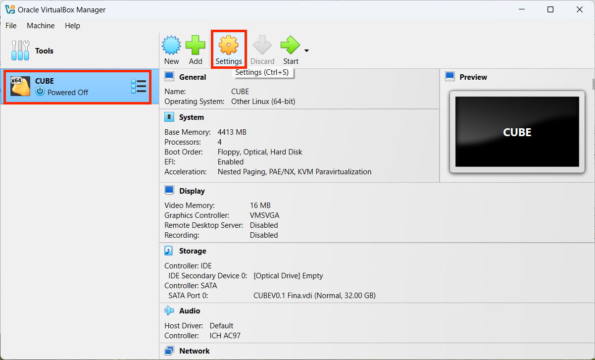 Select the created virtual machine and click the “Settings” <img src="https://67406449-files.gitbook.io/~/files/v0/b/gitbook-x-prod.appspot.com/o/spaces%2FCnF8kmk9yw3yiy2mRerq%2Fuploads%2FbCq5o9wm5cZdaXqZgccV%2FScreenshot%202024-11-18%20at%2015.19.16.png?alt=media&#x26;token=7427dab3-d960-4840-87d8-e9cc2c744919" alt="" data-size="line"> button.